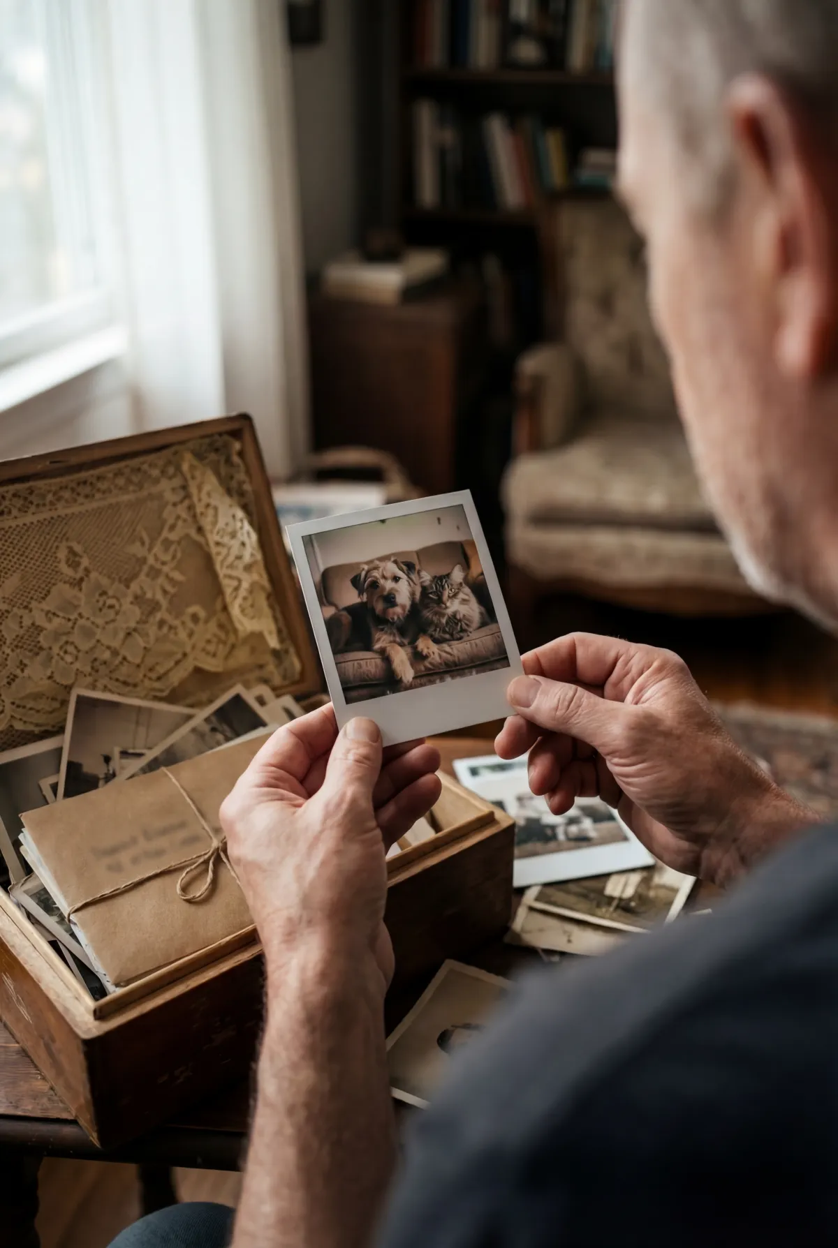 Great question! We use AI technology to animate your pet's photo and give them a voice that matches their spirit—whether that's playful, gentle, wise, or goofy. The script is written based on everything you share about them, so the message feels authentic to who they were. Many clients say it feels like their pet is really there, talking to them.